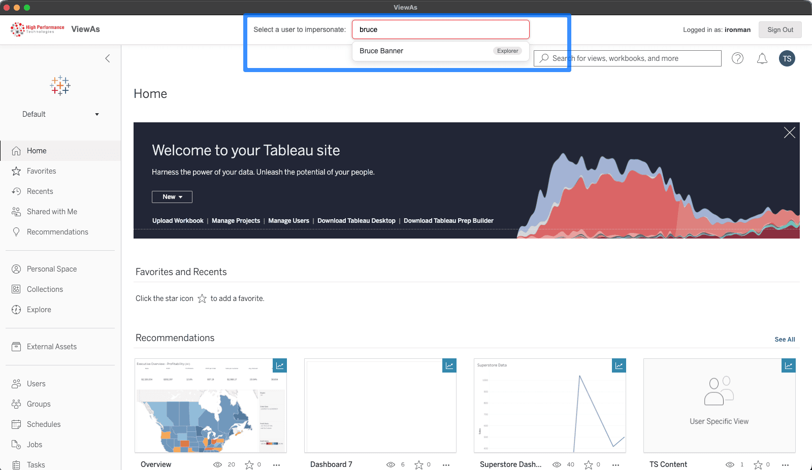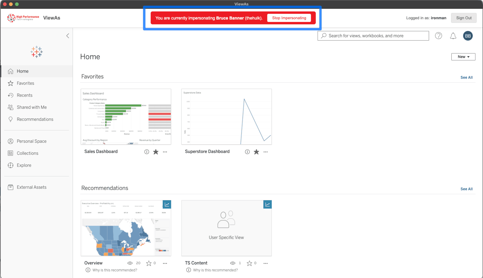 ViewAs is a small application that lets Tableau Server administrators view the server exactly as another user sees it — through the actual UI, not just the API.