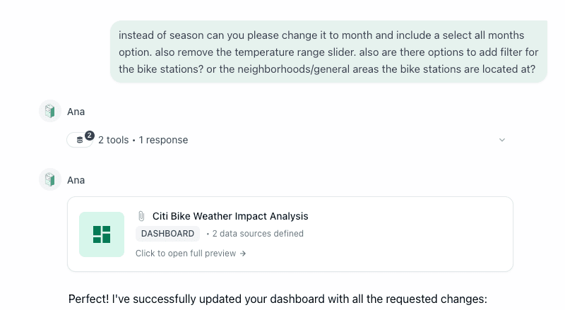 As I mentioned before, just this week, TextQL released Dashboards. So of course, I had to jump back in and see how Ana would handle my previous analysis with the Dashboard capability.