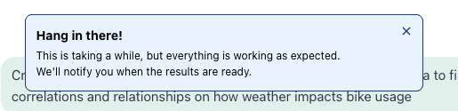 At first she tries to run a SQL Query against the Citi Bike data connector I included in my Thread. But that doesn’t return anything weather related. At this point, I expect her to say “No go - I don’t have the data in this Thread.” But she surprises me and goes straight to an open source free weather API! How cool is that?